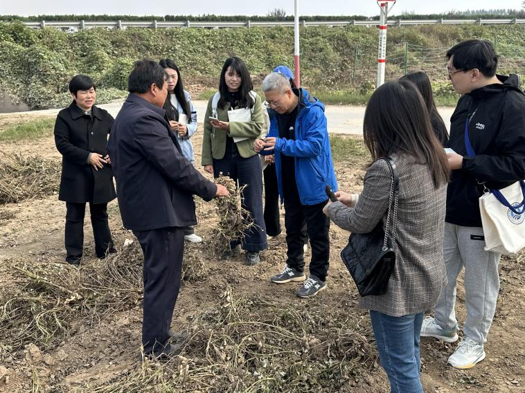 调研首站为双塔镇郭堂村花生高产高效生产技术示范基地。在当地村干部的陪同下,师生详细了解中高油酸花生新品种种植、土壤保育技术应用及病虫害绿色防控成效。